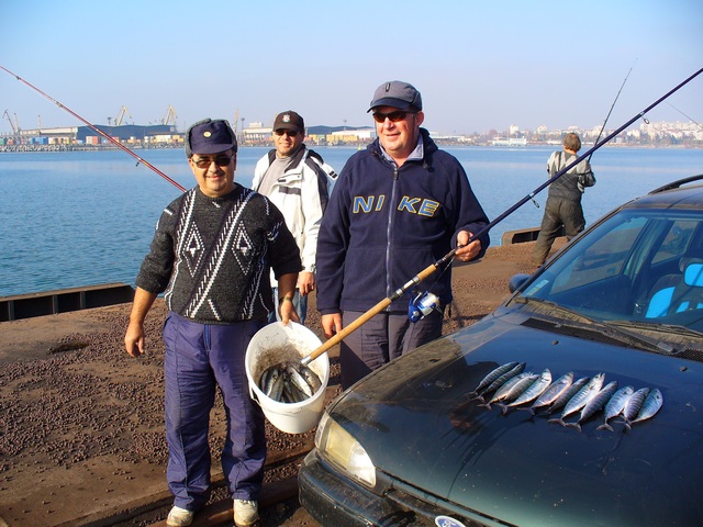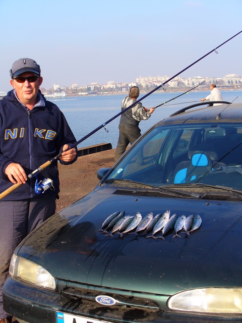 В субботу искали калкана — глухо. В воскресенье в Бургасском заливе сети, ушёл в японский порт и взял 12 маленьких паламид на самодур, одна крупная оторвала. Утром снова одна рыба и на работу. Морская рыбалка в Бургасе на ходу.