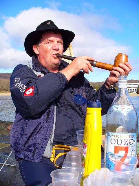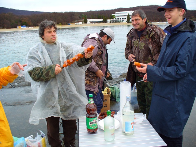 Встретились под дождём, чай, узо и ракия. Обсудили и решили делать августовский Duny-Alepu Open 2007 по морской рыбалке. Panasonic LZ1 снимал хронику.