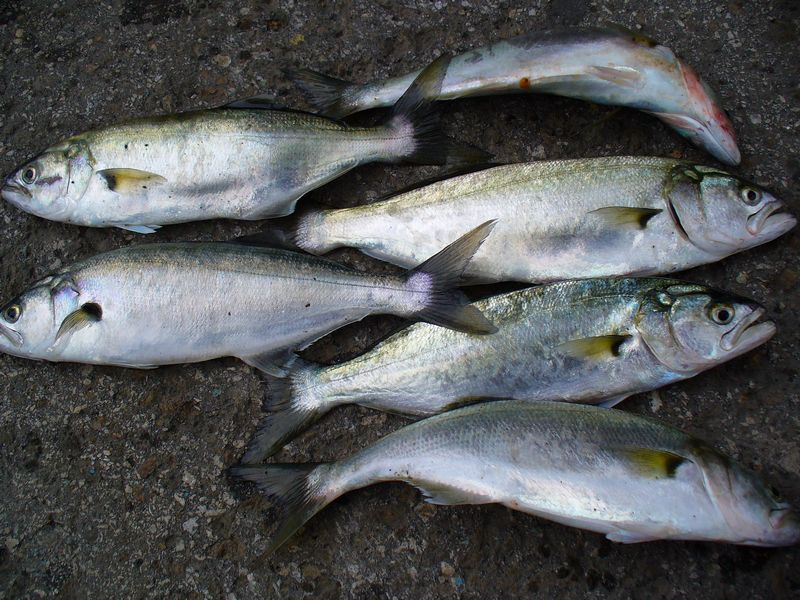 Луфари дошли до 13 штук. Погода хмурая и ветреная. Работала донка и сочная плотва — ставриды нет. Про кальмара вспомнили атлантический опыт со «сигарами».