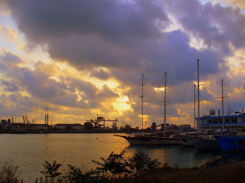 Утро 12.10. Порт Бургас. Серия фото перед штормом, дальше — по погоде. На воде всё меняется быстро.