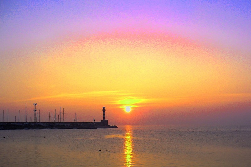Ждём 24 декабря. Холодно и хмуро, но по 1–2 рыбы на удочки идут. Пеленгас, кефаль и судак, по мелочи — хамса и бычки. Рассвет золотом, морозно и красиво.