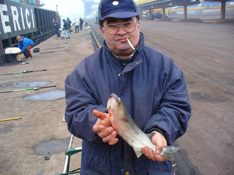 Туман и мороз. Клюёт плохо, только у Ден40 — 1 пеленгас и 2 белых кефали. Шутим про желтую «кастрюлю» на конце пирса — мол, «ритуал» помогает, а без него — тишина.