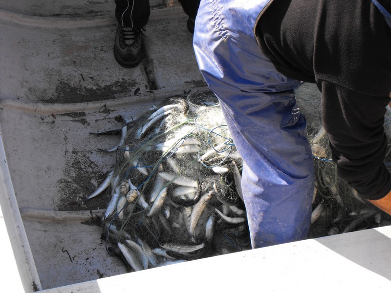 Семейная поездка, заглянул в порт — тянут сеть, ловят сингиля. Это наживка для парагада на калкана/катрана. День был тёплый +14°, потом ушло в минус.