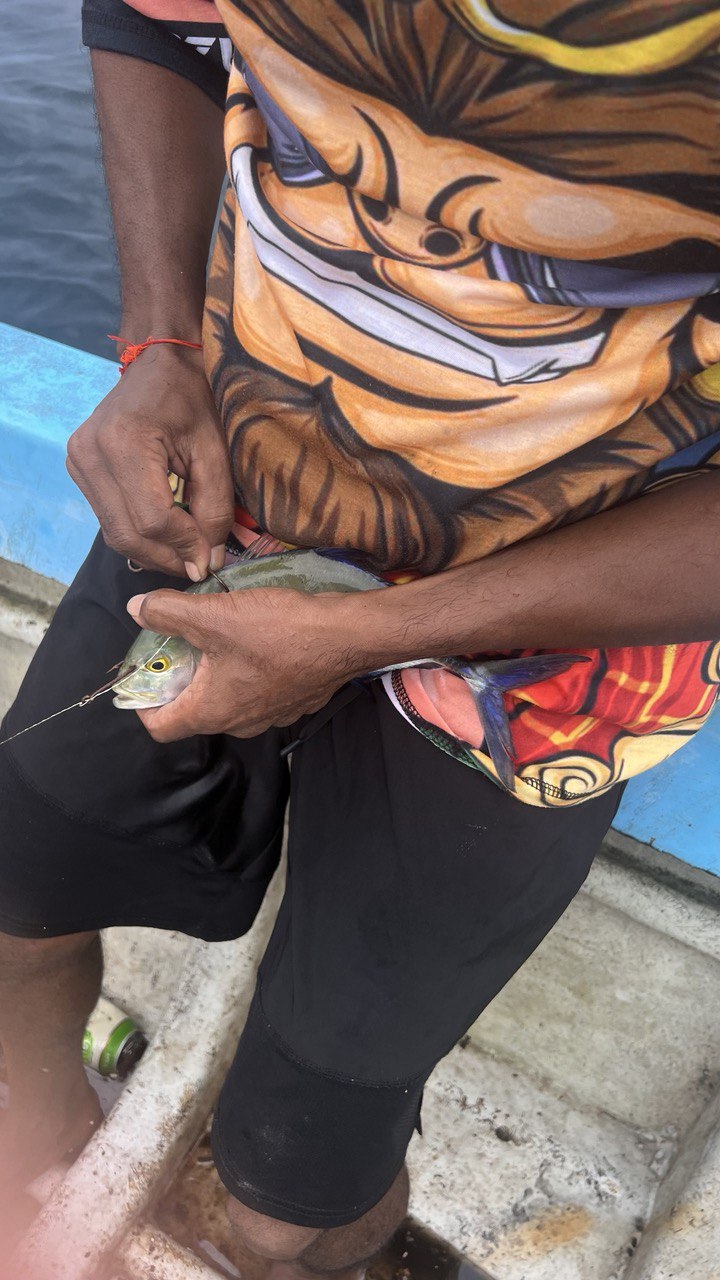 24.01 снова Тангалле, но уже с другой командой. Обещали живца. В реале вялый троллинг, пара бонито. Попросили сменить формат - поставили донку: пошли чикен-фиш, пару мелких снепперов и малыш GT, которого уговорили на роль живца - ноль реакции
