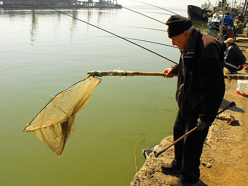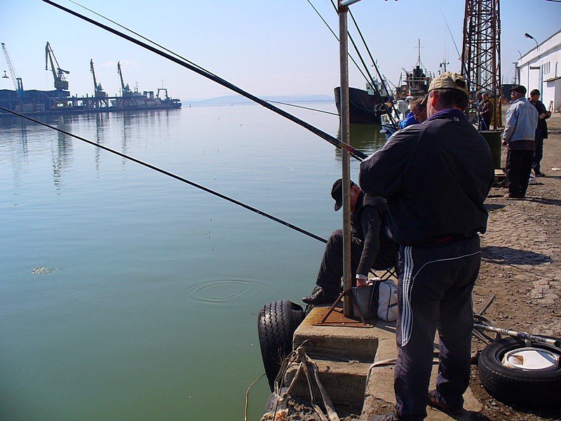 Канал Славянка, порт Бургас. С 01:30 до рассвета мерз, потом солнце и тепло. Самодур, крючки №10, насадка — нереис (разный) и свежая цаца. С рассветом пошла шпрота — хорошая раздача.