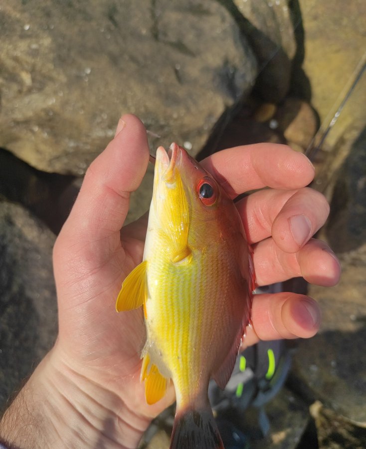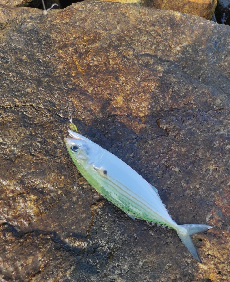 Часик развлекся - резина Bugsy Bait Breeze и какой-то рачок, в основном корал-фиш. Всех отпустил, одну серебристую отдал местному - попросил. Прилетел вчера, сегодня отсыпался, начал ловить ближе к 8 - дальше жара, поплыл