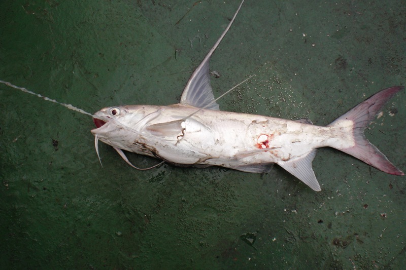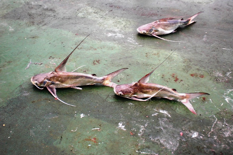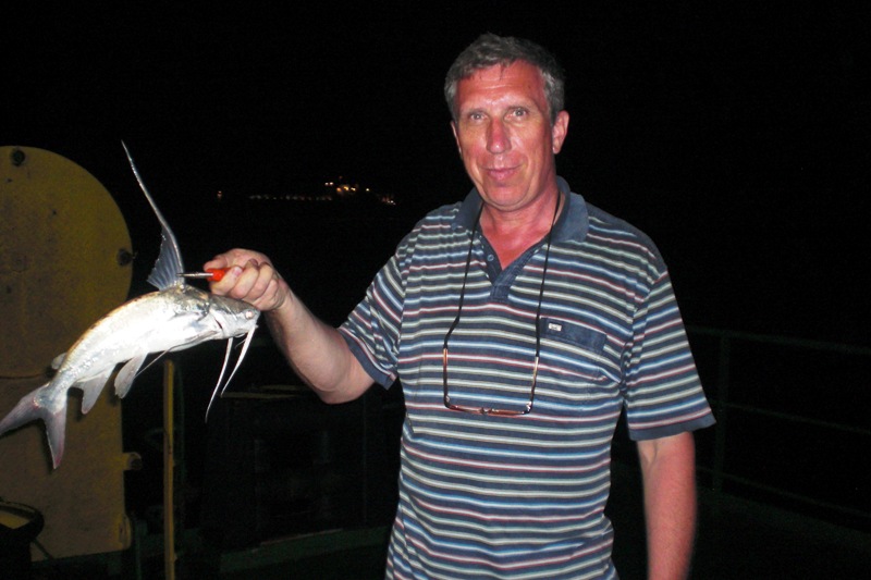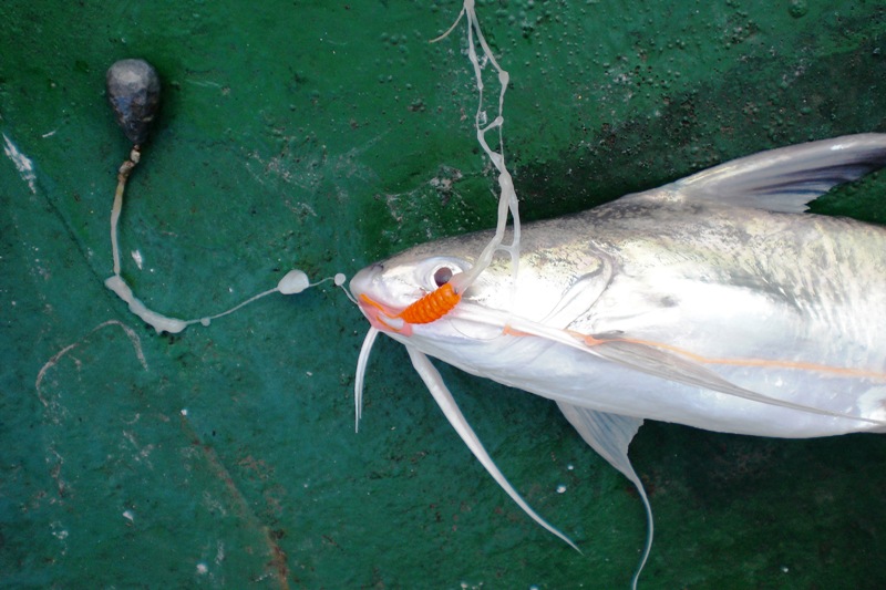 На сомиков ставил кусочки кальмара и мяса — этого достаточно. На резину клевали хуже, но отказываться не спешили. Морская рыбалка на простых насадках выручает.