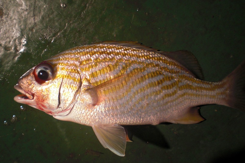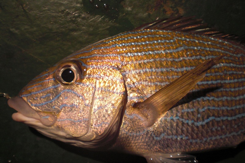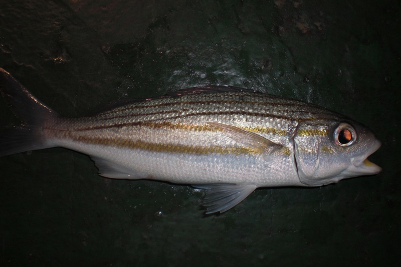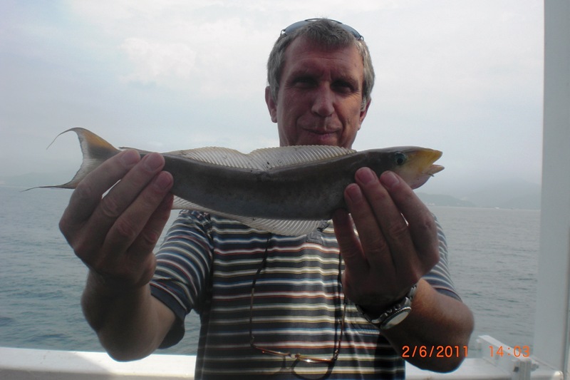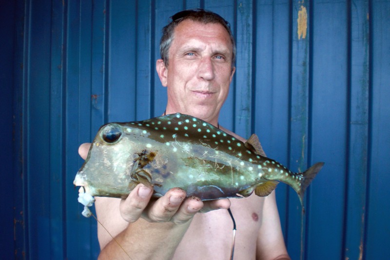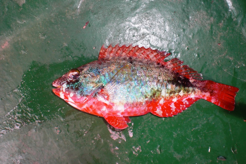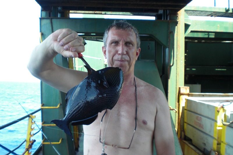 На красивых рыб вышли с борта. Чёрную брать не рискнули, неизвестная. Рыбку с глазами вниз ловили на кусочки силикона. Красную вернул за борт как в сказке про золотую, без трофейной суеты.