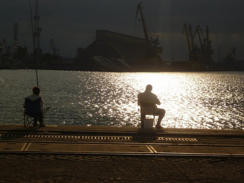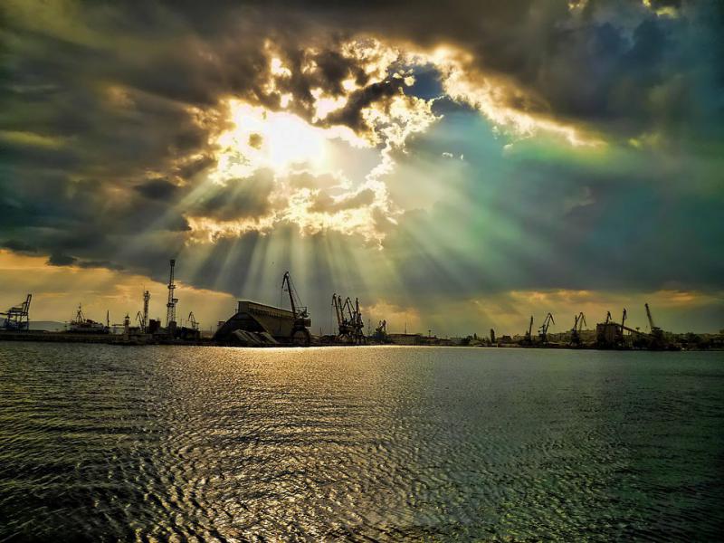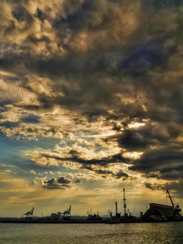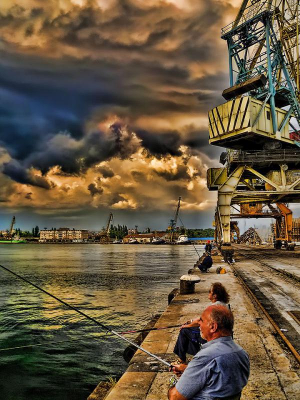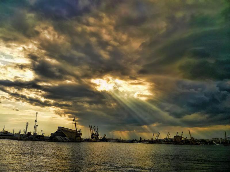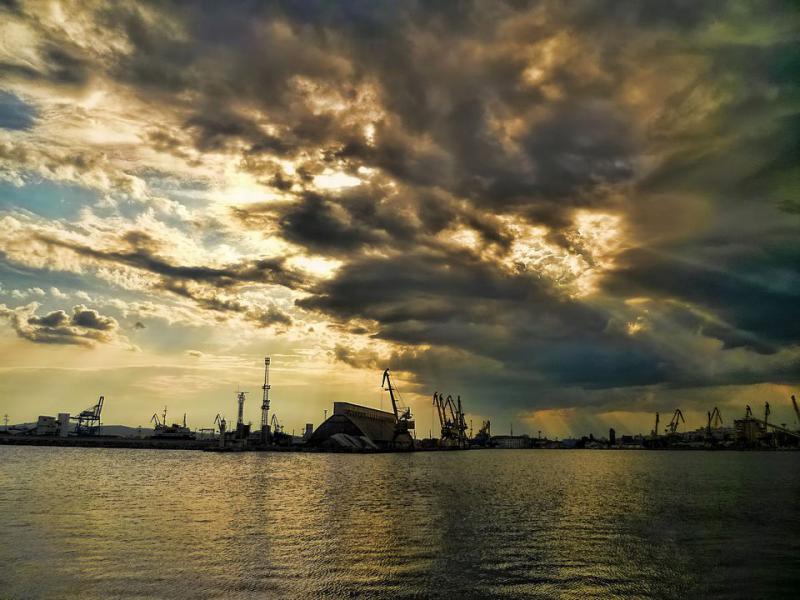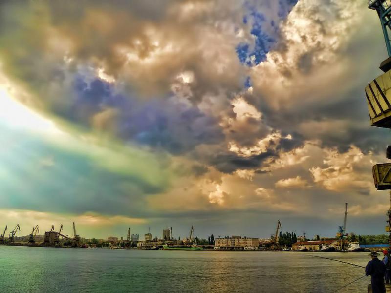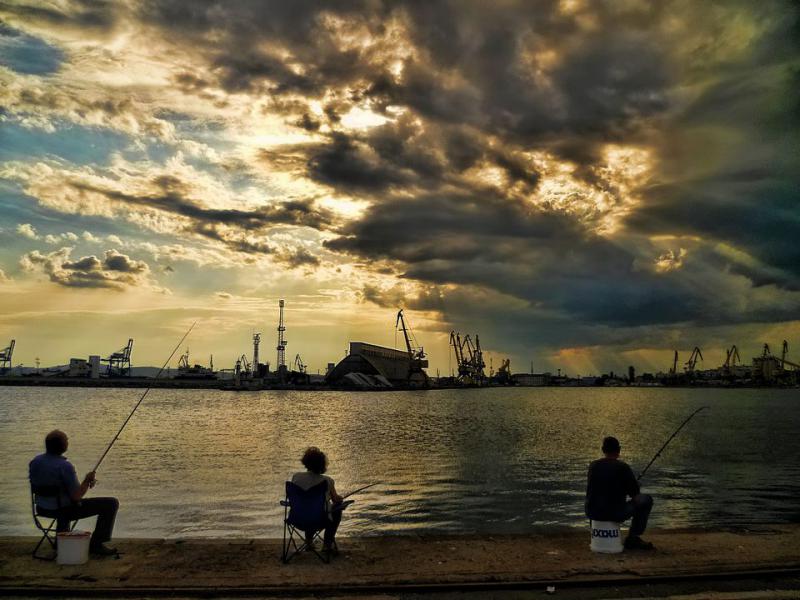 После работы на пирсе, самодур дал одну хамсу. Гроза пришла, рыба ушла. Морская рыбалка в Бургасе прервалась фронтом.