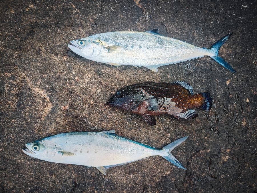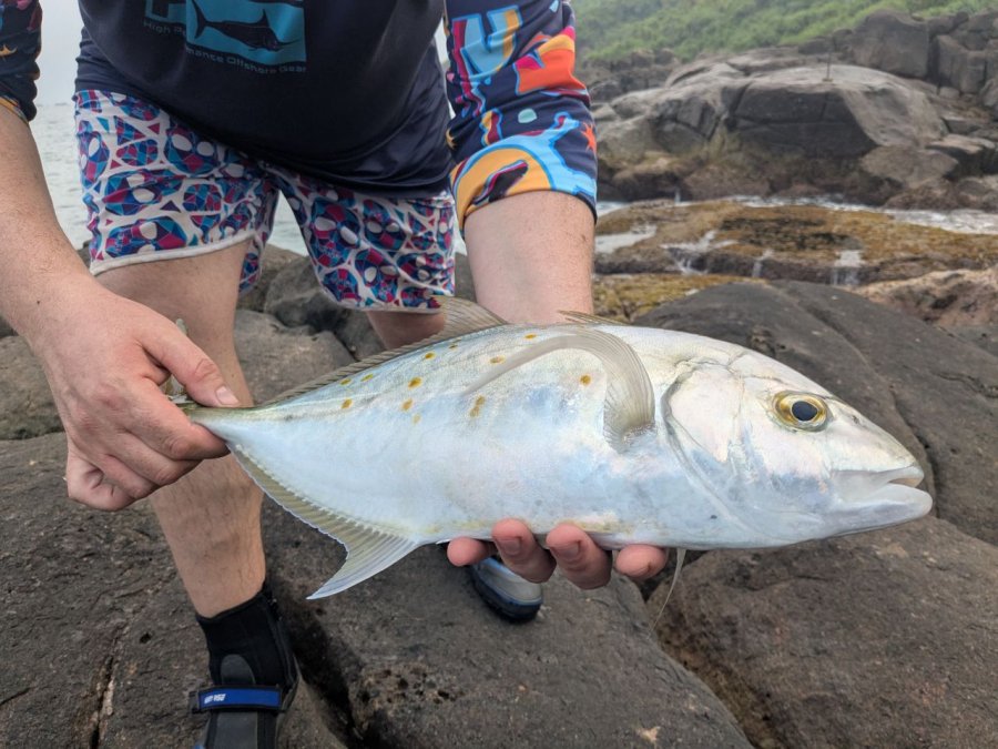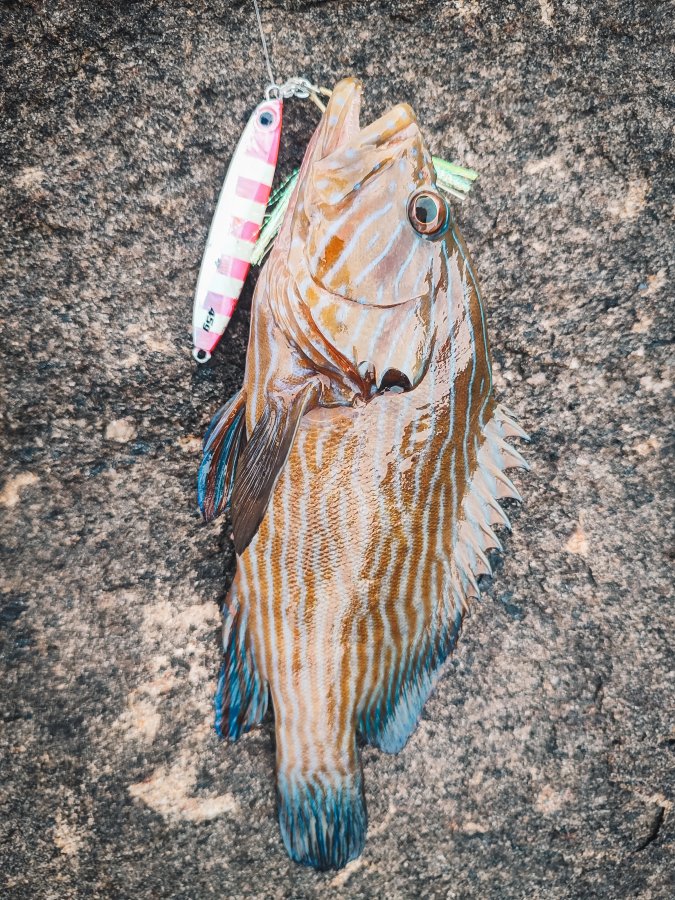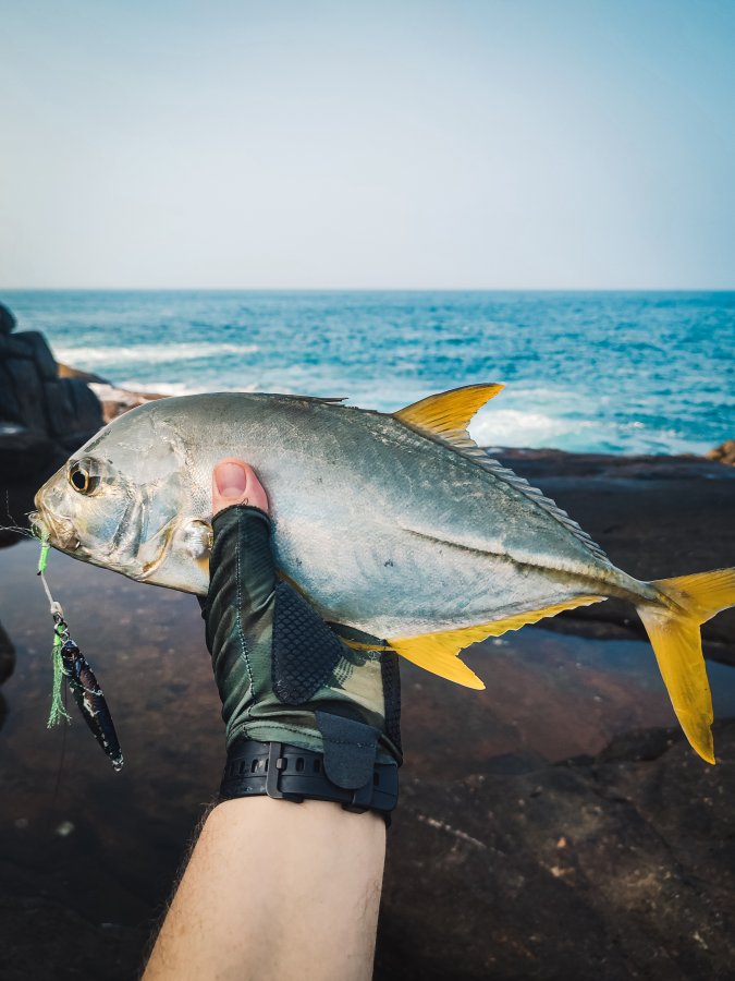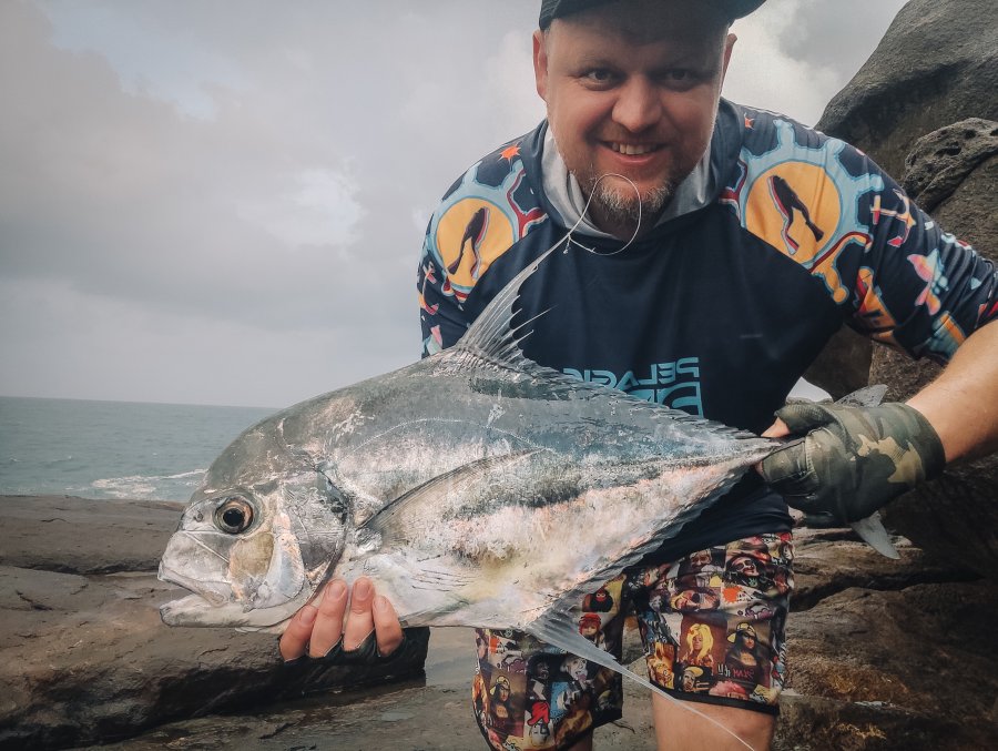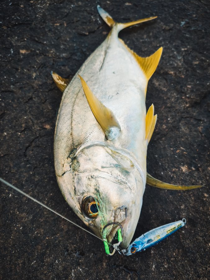 Год спустя вернулся. В этот раз береговая прям пошла - почти каждый выход с рыбой. Работали пилькеры 40-50 г: со дна групперы, в толще квинфиш и оба тревалли - yellow spotted и blacktip. Вишенка - трофейный African Pompano