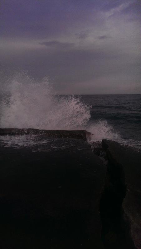 В 4:30 на берегу, шторм «разболтал» пирс, смещение плит чувствуется телом — страшновато. За четыре часа ни одной поклевки, у кромки много грязи. Но воздух свеж и сил добавил. :)
