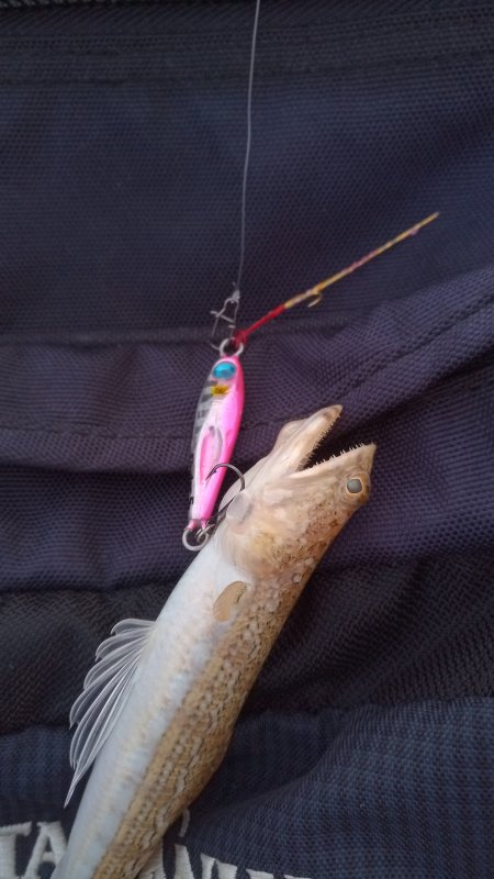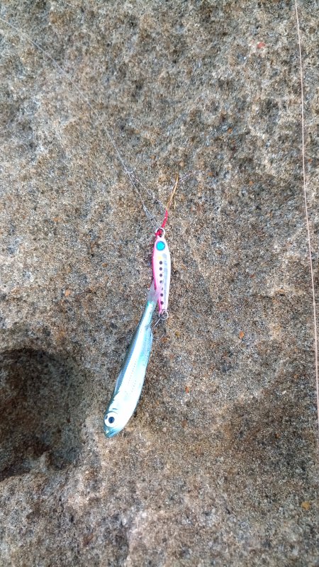 Сейчас регулярно ловится ядовитая мелкая на небольшие пилькеры, сегодня 5 штук за час. Был сход приличного саргана. Бонус ушёл после полутора минут борьбы, срез ассиста оставил красный узелок.