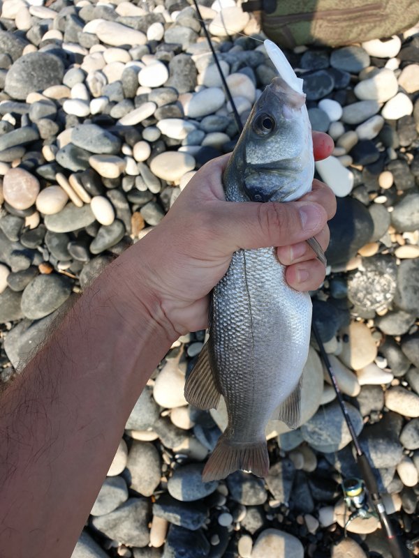 С 16:00 до 18:30 поймал сибаса на бомбарду с силиконовой приманкой. Поставил нереиса - взял гитару. Морская рыбалка на Кипре порадовала разными видами.