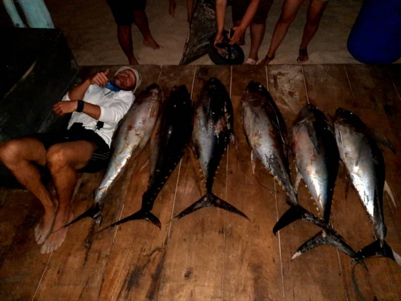 Лучшая поездка: десятки тунцов на джиг, утром — груперы, три парусника, GT на джиг и поппер, джоб-фиш, собакозуб 40 кг на троллинг, две махи-махи одновременно, ваху, масса снапперов. Очередь к борту.!