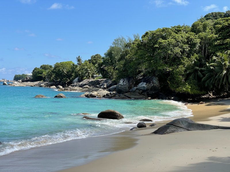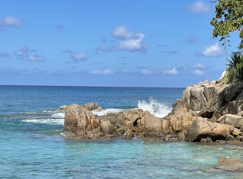 Дали мышцам отдохнуть. Прогулки, лайфхак с бутылкой для смыва песка. Пытались с рифа на Бо Валлон — мелко и ежи, нужны сапожки. Гид направил на скалы у «Sunset Beach». Вывод: рифовая ловля требовательна к обуви и приливу.