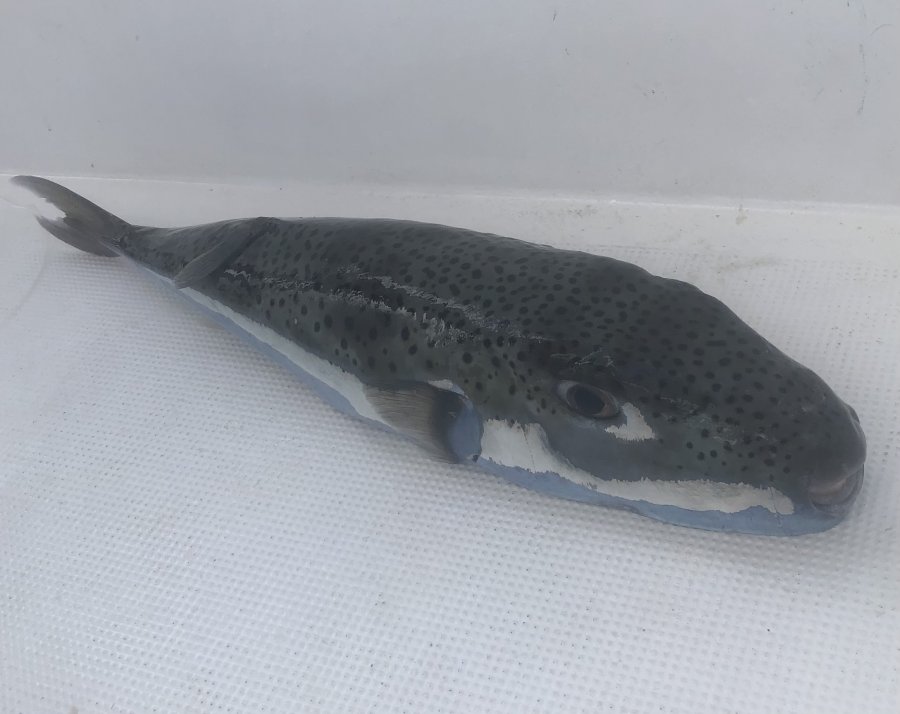 Поймана рыба, местные назвали фугу. К употреблению не рекомендуют — ядовитая. Фото было для идентификации. Морская рыбалка на Сейшелах требует осторожности с видовым составом.