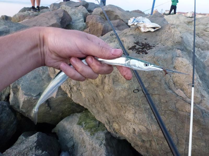 Первый опыт моря. Днём на пирсах микроджиг — зелёнушка. Ночью — ставридка у берега, вечером попадался бычок. Сарган подошёл — пилькеров не было, бомбарда 5 г не доставала, купил телескоп и 30 г бомбарду.