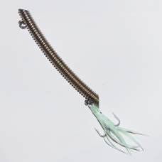 Тест «гофры»: после рывка зависает и ныряет — красиво, но после 5–6 рывков захлёстывает за леску, вес 500–600 г не чувствуется. Мысль — спил сместить в сторону. «Гофра-банан» тоже интересен.