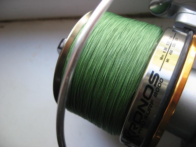Trabucco Kronos Pro Surf 8000: намотка плетни 0.18 + монка 0.30, отступ 2 мм