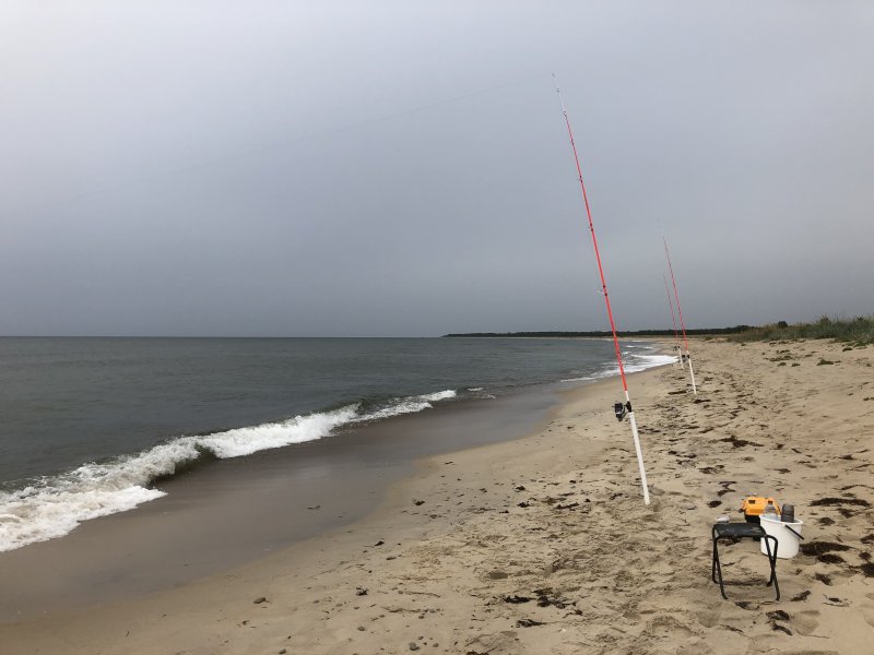 Делаю отчёт. Палки East Shark Warrior ещё в строю, катушки сменил на 9000. Поставил триггеры — палец жив. Заброс примерно до 100 м, сезон открыт, камбала пока некрупная.