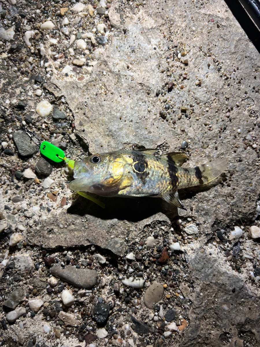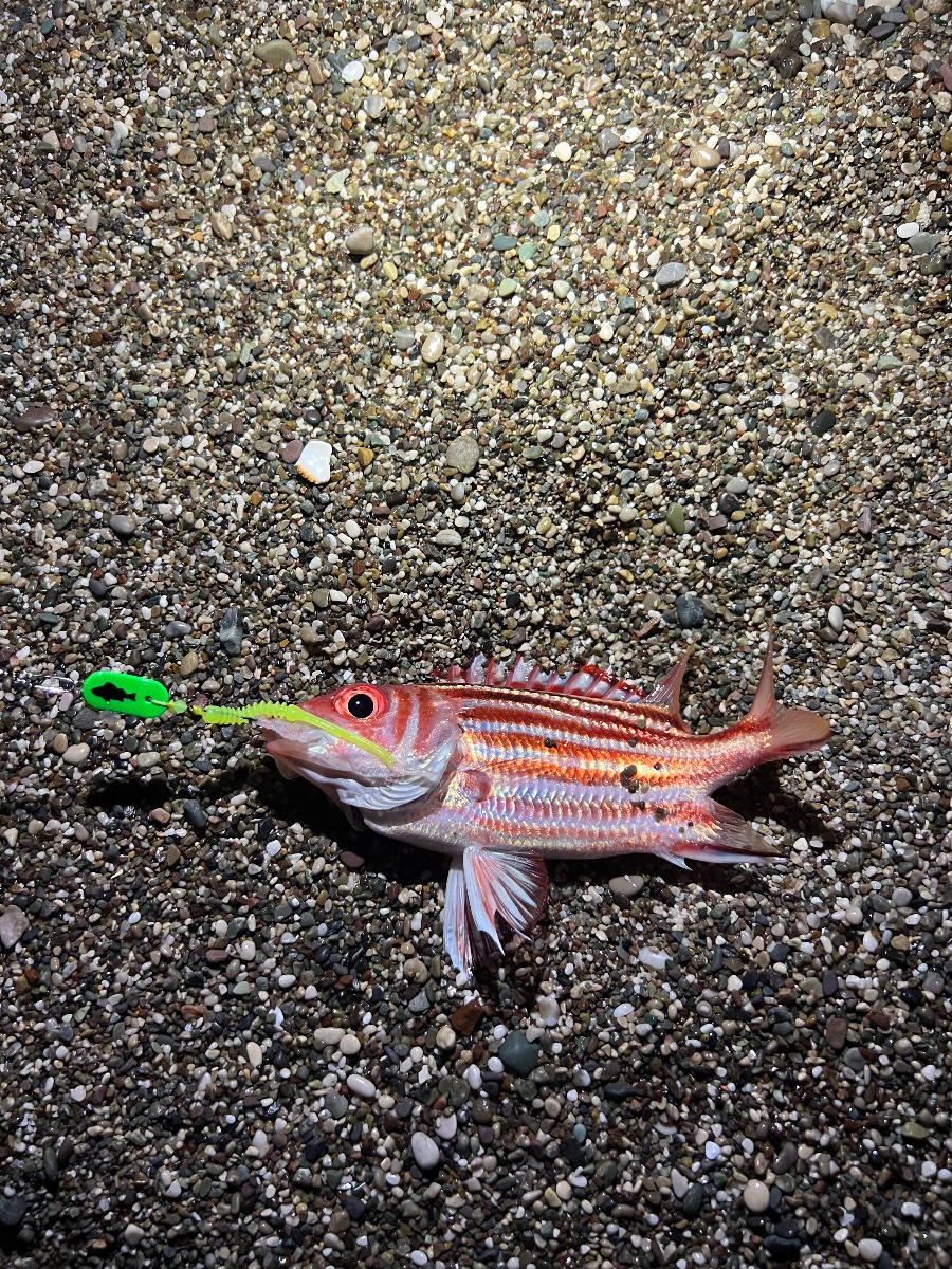 Лёгкий спин 1–7 г, первый заброс - фрикцион поёт, небольшая барракуда. Потом "маленькая" из семейства груперов и три "белки". Буллер 2 г, резина - ночь держит сюрпризы.
