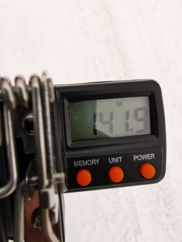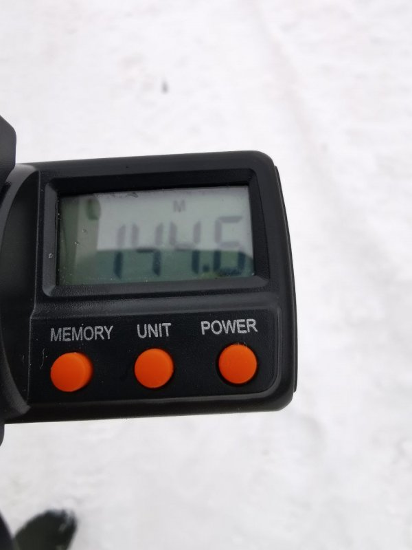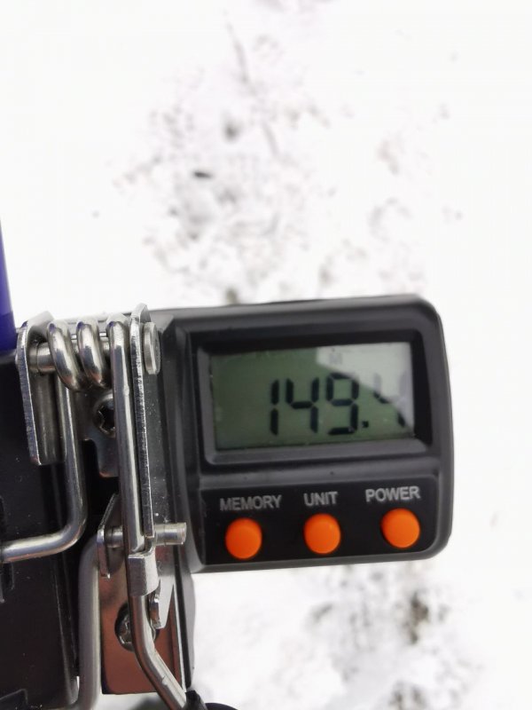 Скользко, груза обросли льдом и грязью. Средние дальности: 150 м у Sportex и 152 м у MadMouse. Летом у "немца" запас, но пока так.