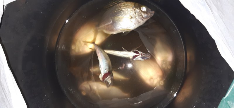 Лёгкий поплавок 2.5–3 м, сухой червь работает, днём хуже. Карась и барабулька, ночью комфортнее. Запекали на эвкалиптовой коре.