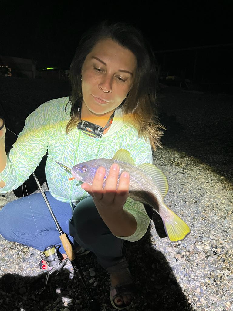 С одной стороны мыса шторм, ушли на тихую. Пилькер дал ставриду, скорпену и мощного горбыля, фрикцион визжал. Отпущен. Морская рыбалка в Абхазии бодрит.