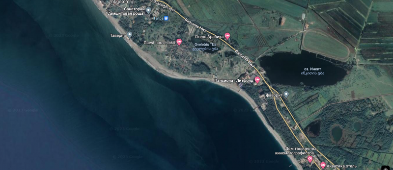 Если есть время, пройтись к пирсу в сторону Пицунды — под ним прячутся горбыли. Дом кинематографистов на ремонте, идти по берегу. Давний опыт, могло измениться.