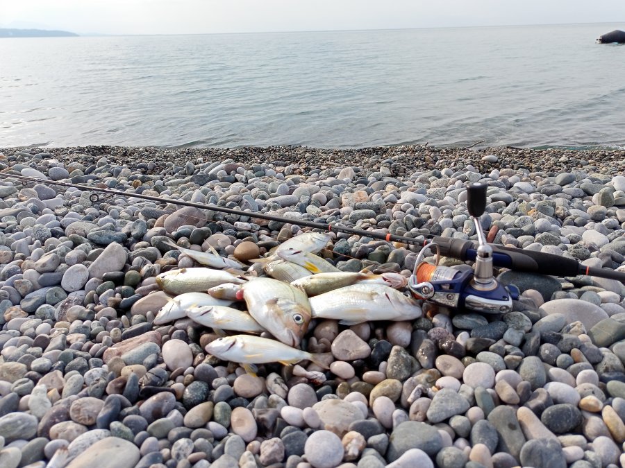 Пицунда, Морвокзал: «та самая» сошла, итого дюжина ласкирей и барабулька на отводной