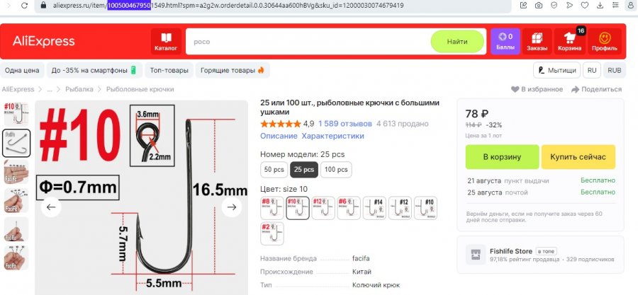 Браслеты на WB есть: крючки с большим ушком, на отводной — обычные, офсет мелкий
