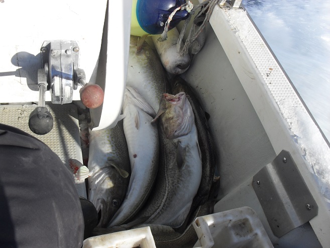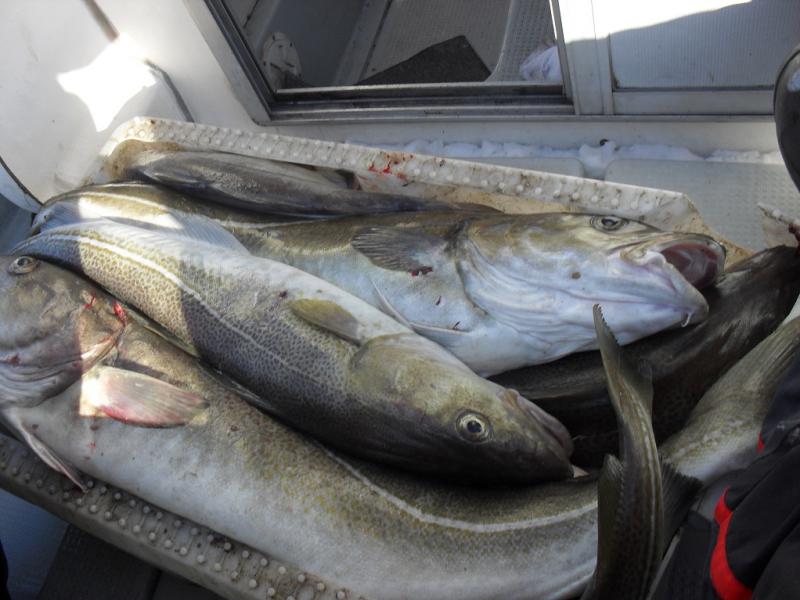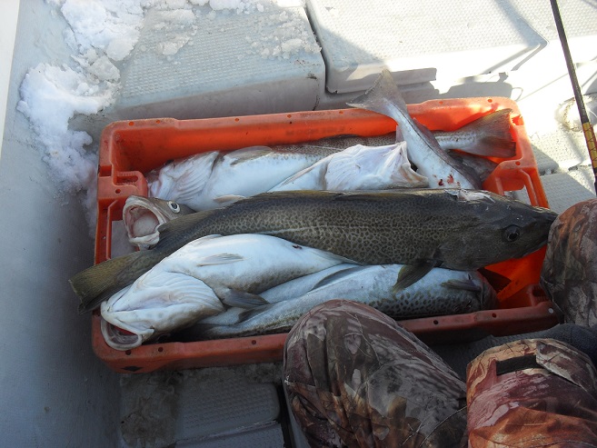 Добирались с ночевками, дорога закрывалась. Жили на «45 причал», холодно — электрообогрев не спасал. Ловили один день у Кильдина, 50–70 м. Взяли 250–300 кг на четверых, штампы забили. С утра клев на точке, дальше стихло. Треска 4–5 кг, попадались до 12. Спасибо капитану Евгению.