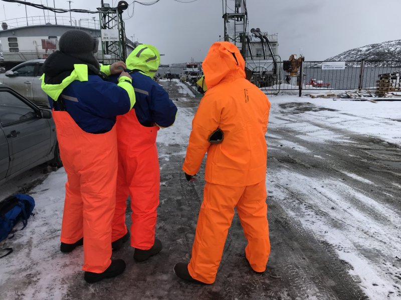 Под ветер и снег — мембрана, варежки, бахилы. Морская рыбалка на Баренцевом море любит тепло и сухо.