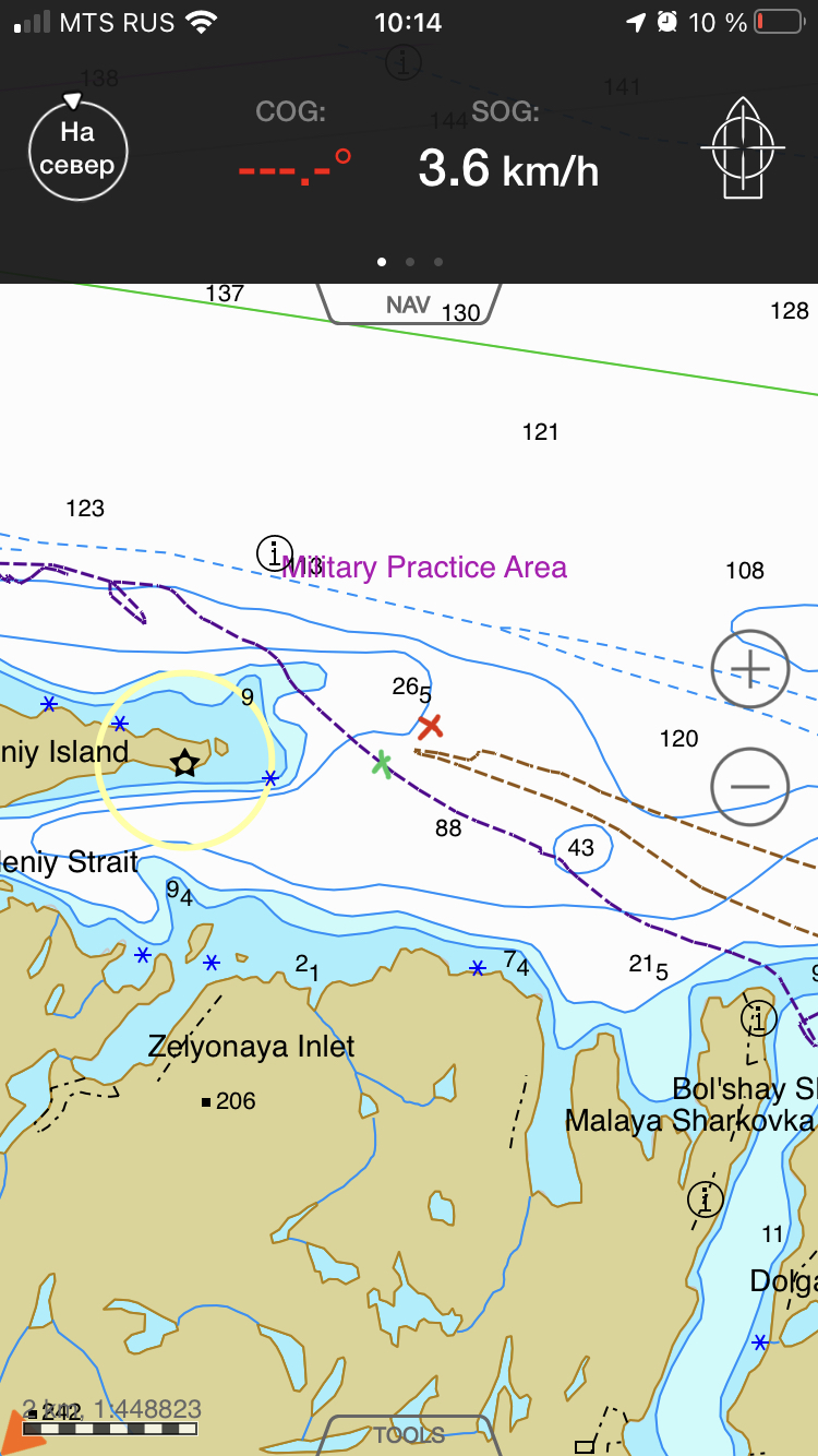 Встретил между мысом Оленьим и Териберкой. По треку — около 200 м разминулись. И шёл он прямо туда, где все рыбачили. Вопросов стало больше.