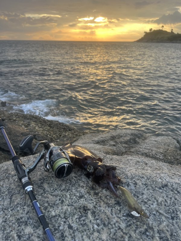 Для тех, кто едет в тепло и не копает японские форумы - набросал короткий гайд. Место: бухта с перепадами, слабое течение, камни и трава, чтобы была мелкая рыбка и креветка. Время - вторая половина дня и сумерки, утром-днем-ночью тоже можно, но вечер на Андаманке топ. Снасти: egi-палка лучше всего - чуйка, вязкость, кидучесть. Из доступного берите лайт до 15-20 г 2.4-2.5 м, не кол. Катушка с тонким и плавным фрикционом, передатка бодрая. Плетня 0.6-0.8, лучше кальмаровые серии, флюр мягкий 10-12 lb - приманка должна планировать. Приманки: Yamashita и Duel-Yo-Zuri рулят, Shimano тоже норм. Размер 2.5 - база, держите 2.0 для мелководья и 3.0 для дальних забросов и ветра. Дешевые egi пригодятся для разведки дна. По цветам набор - яркие и натурал. Теории цветов у Yamashita есть, но часто ломается - проверяйте по факту. Проводки: чаще у дна. Есть поговорка: «если не касаетесь камней - ловите неправильно». На глубине твичи резче 3-4 рывка, пауза 4-5 с - за это время 2.5 тонет на метр. Ближе к берегу мягче и иногда равномерка сверхмедленная. Мелкие egi 1.8-2.2 - нежный твич с паузами. 95% поклевок - на паузе. Фрикцион ослаблен так, чтобы на твичах отрабатывал корректно. За местными смотреть полезно, но хорошая снасть и понимание техники позволяют облавливать «аборигенов». НХНЧ!