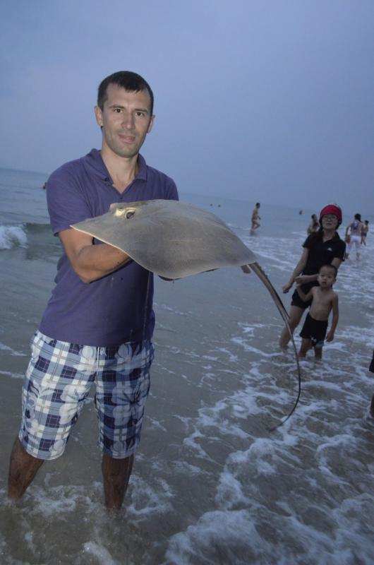 всем привет. две недели на Хайнане, Санья, пролетели как миг. по рыбалке так. вся кромка моря занята местными с китайскими сетями, тянут всё подряд. один рыбачок сказал типа у берега море чистое потому что пусто, всё выбили, надо дальше отплывать.