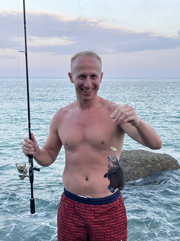 Вышли в 6:30 на южный край Карона. Полтора часа на скалах - минус одна приманка и одна рыба. Завтра схожу один на северную часть.