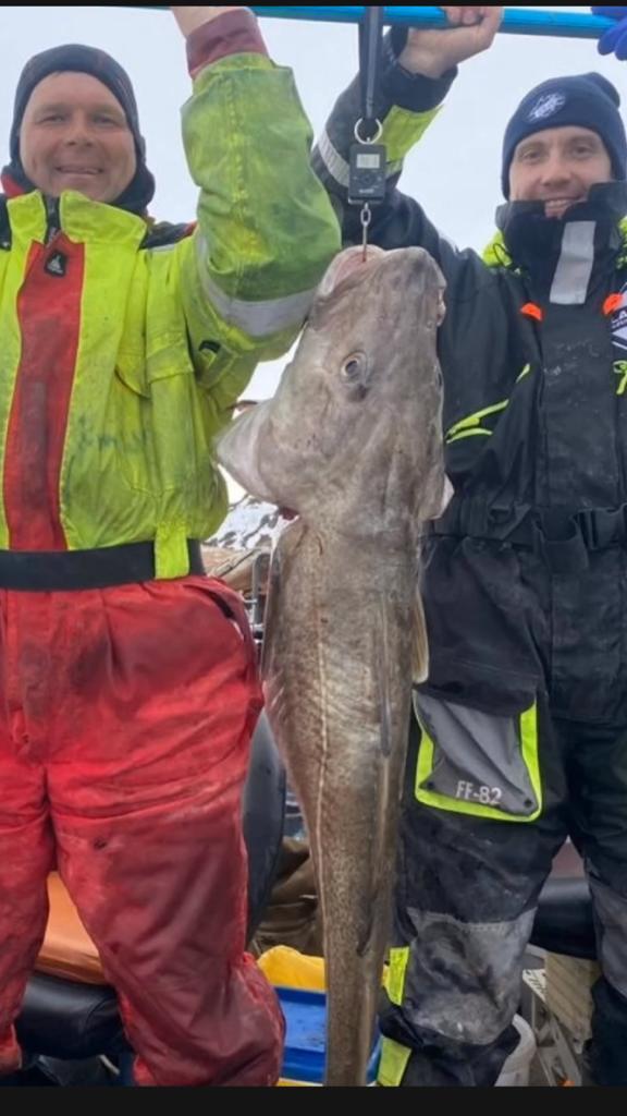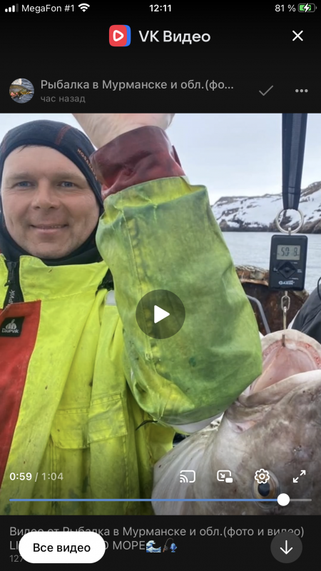Сделал стоп-кадр с видео. Треска зачётная, но если прикинуть по рыбакам, «50 кг» больше похоже на либры. Доверяю глазам.