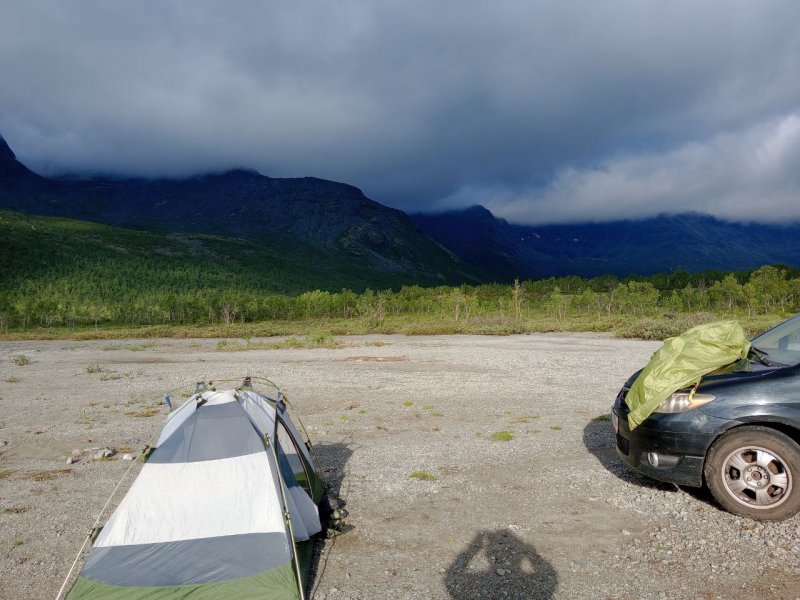 Поехали, а вышло тяжко. В Ярославле ночевали в палатках из-за поломки, дальше Хибины — дождь, скользкие камни. В Апатитах сауна, потом рванули на Териберку и попали под ливень, последние 30 км по разбитой дороге. Прибыли 17.08 — ветер сбивал с ног, шторм, запрет на выход до 22.08. Съездили на озеро Секретарское — три часа без поклёвок. Купили краба и копчёную рыбу; клешни — около 3000, зубатка, камбала, треска недорого. Домой вернулись без приключений. Морская рыбалка в Териберке не вышла.