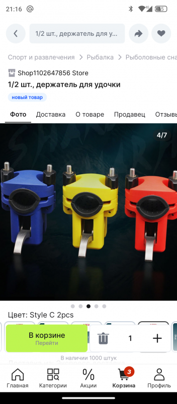 С текущим держателем рывки сильнее, чем в руках. С вращающимся наконечником палка норовит свалиться, когда достаёшь рыбу. Нужна защёлка или не вращающийся тип.