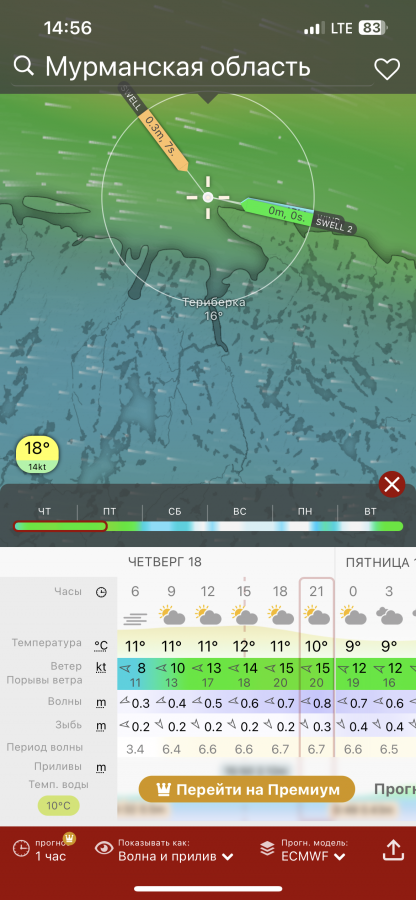 Глубины 120-150 м, треска до 6 кг, Азимут 350 - первый выезд в Териберке