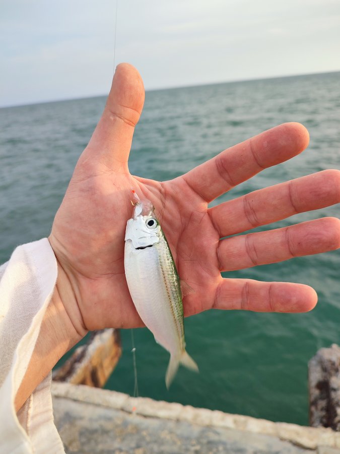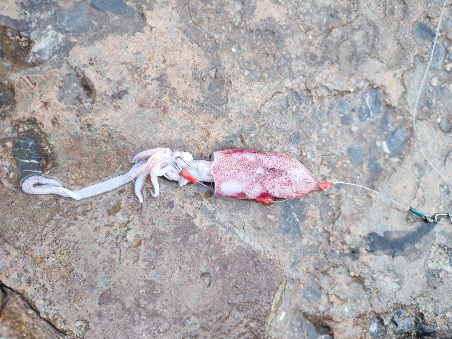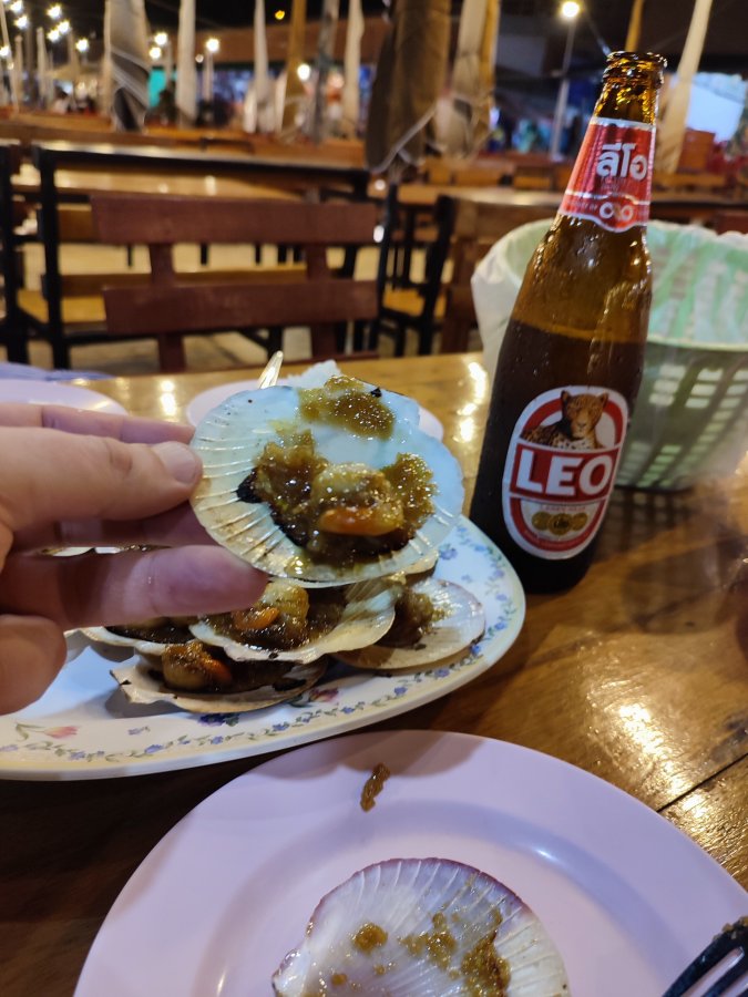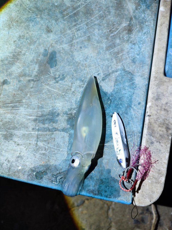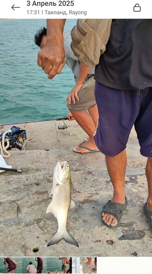На следующий день сарган как вымер. Думаю, сетями прогнали. Один покалеченный попался - барракута отметилась. Кальмарку вымачивал суммарно больше 30 часов - две невнятные потычки и мимо. Насадку менял - объедают быстро. По приманкам вообще ноль. Под пирсом гонял малька, птичкам мелочь, покрупней в отеле щукам-гарпиям отдал - живцом они так себе. Цены тут смешные: кальмар 150 бат/кг, манго 3 кг по 100 - вкуснее, чем у нас привозной. Нашел два рыболовных в Бан-Пхе - у пирса на Самет и у рынка. Вечерами на пирсе толпа, похоже это одна из немногих рабочих точек между Районгом и Бан-Пхе. Народ поднимает кальмара, размеры разные. Я к вечеру уже дегустировал морепродукты у соседей - отдых на 5+