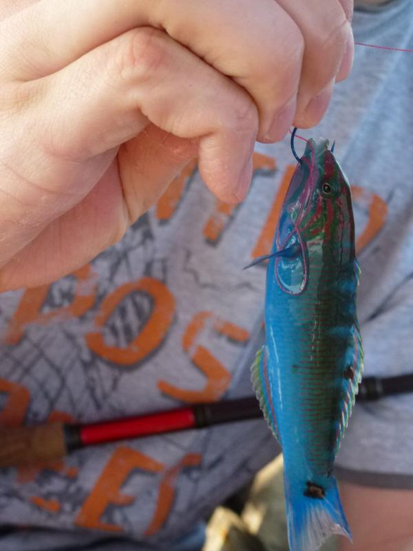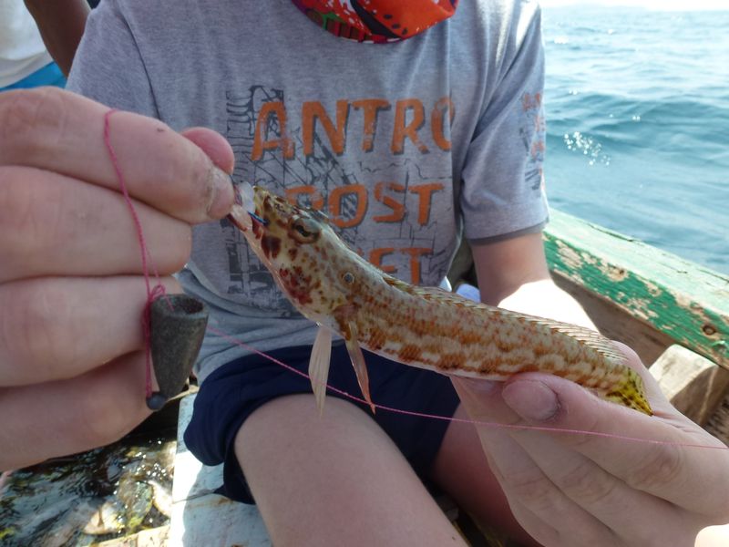 Выходили на лайтовый спин, в отвес на кальмара. Клюёт «как на чёрных камнях». В открытое море с ребёнком не пошёл.