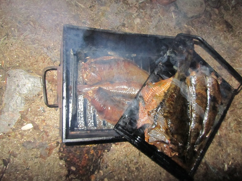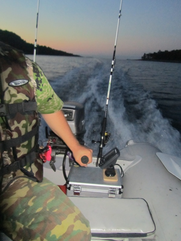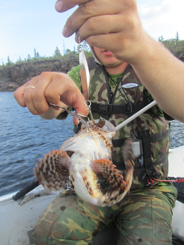 Старт 3 августа, ночёвка в Медвежьегорске, вкусное кафе «Малая Медвежка». В Чупе у Алексея Рыбакова, баня, поклёвки с пристани. Потом автобус, лодка 4–5 часов, домик с банькой. Треска у скал на 15–25 м на Кастмастер с пескожилом и мидиями.