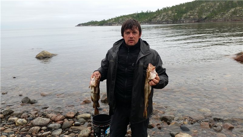 С супругой на Малый Медведок. Треска почти каждый день, одна зубатка — извивалась как змея. Видели белух дважды и «морских зайцев». Связь ловили на Сосновце у избы — Мегафон.
