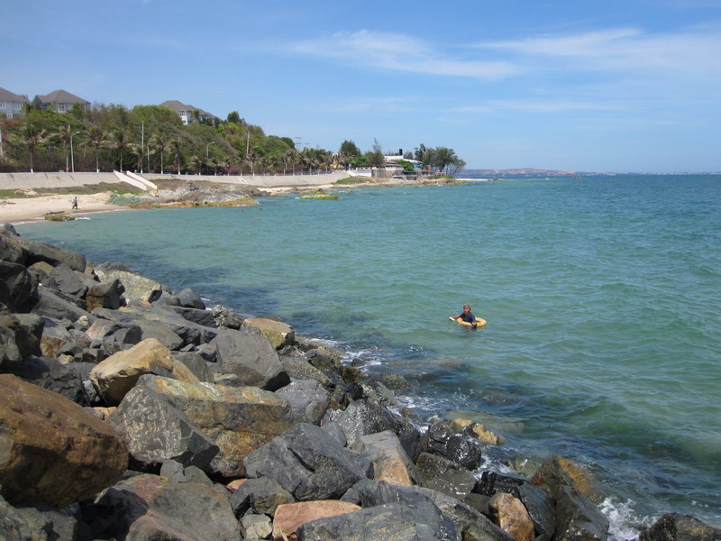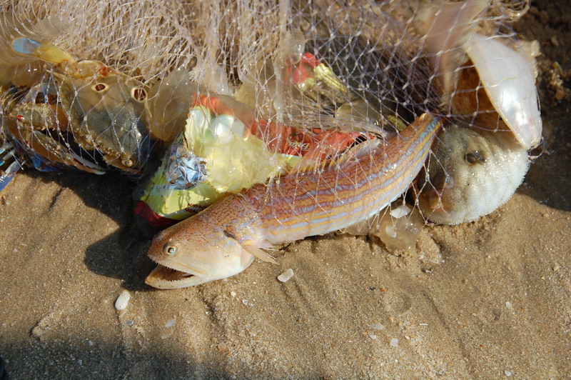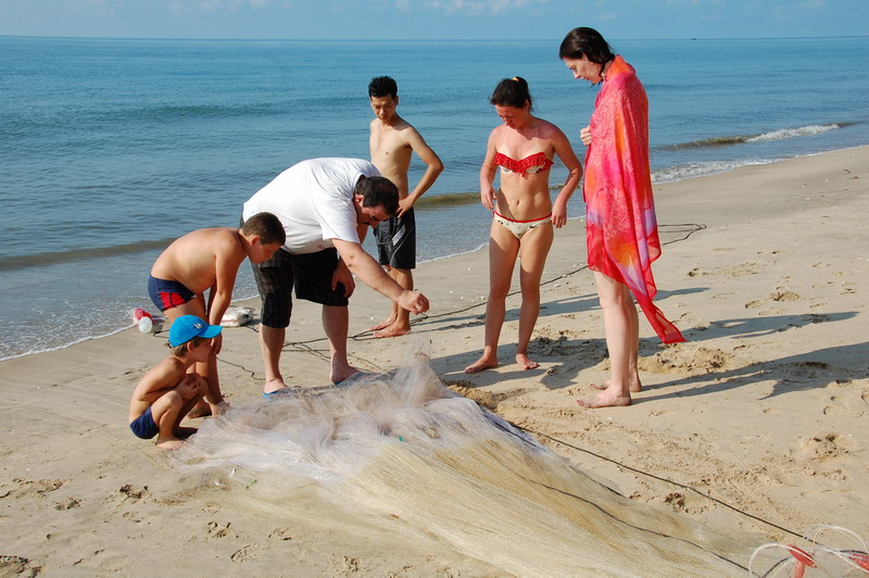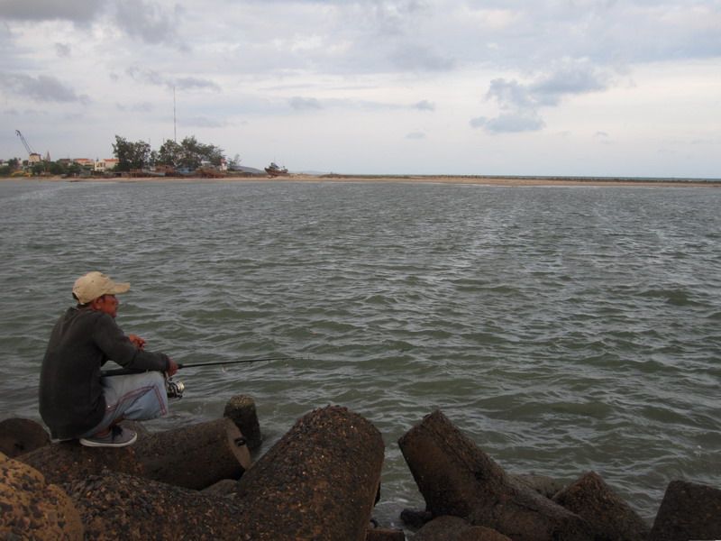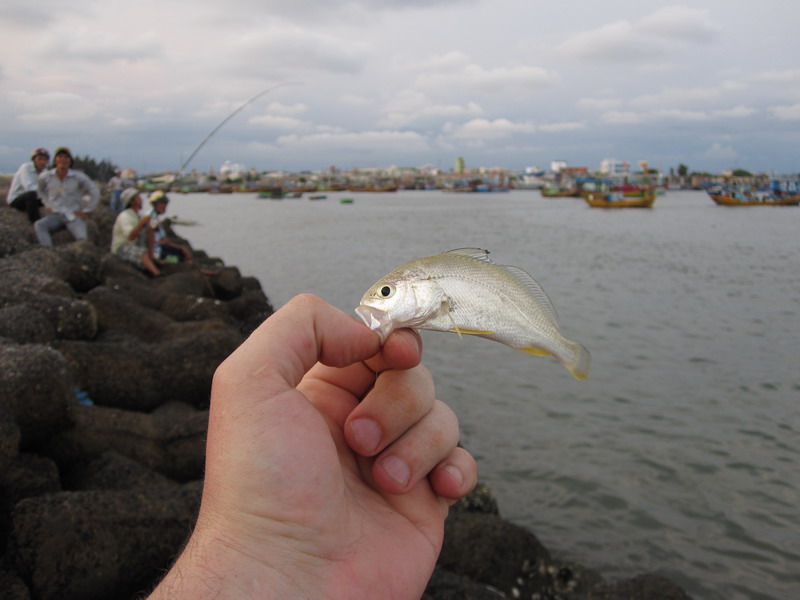 Возле отеля пусто, даже неводом мало берут. Западнее напротив Sea Links есть точка, но народа нет. В порту тусовка, все на мелкие крючки и креветку, стараются сети не цеплять. Редкие сомики то поводки рвут, то на берег, зрители аплодируют. Я тоже попробовал — весело.