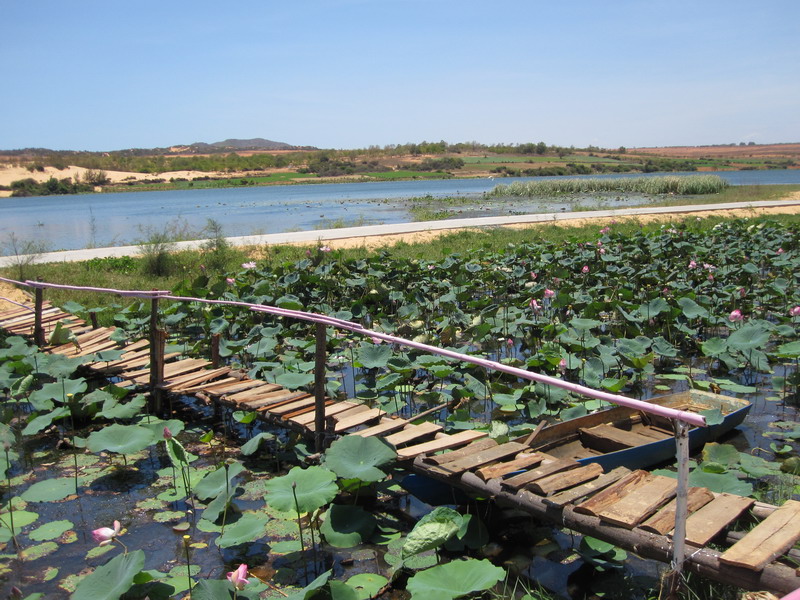 Туриков возят к озеру лотосов. Рыбка типа гурами, по жаре ловить тяжко, я не парился. В кафешке цены гуманные, нашёл тропинку, взял пива и кидаю в своё удовольствие. Две жареные рыбки отдали за недорого, чаевые докинул. Карпа травмировал — ушёл через дырку в садке, подсачек у них есть, леску можно тоньше.