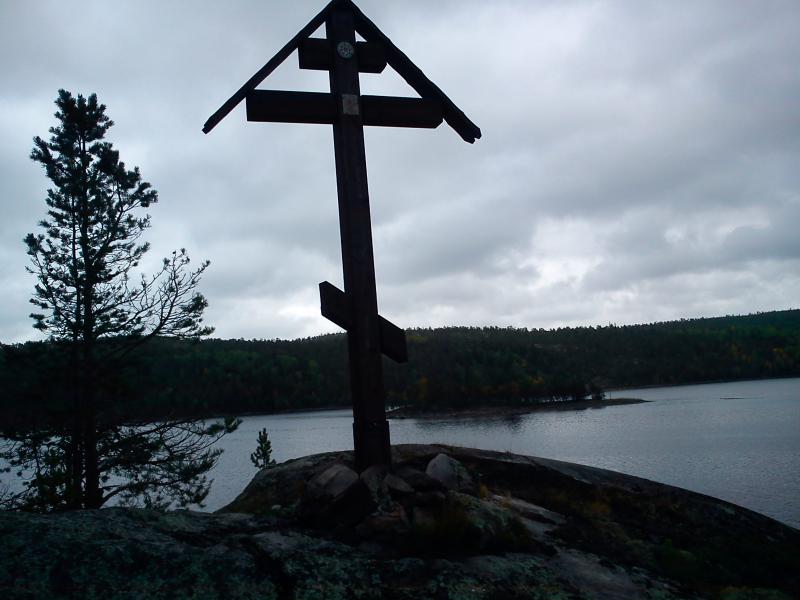 Карелия, Малый Медведок - крест на острове и «дышащее» болото