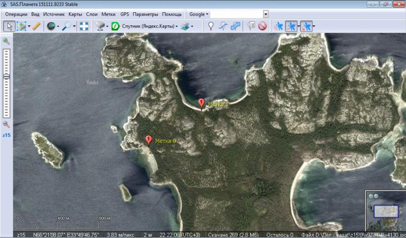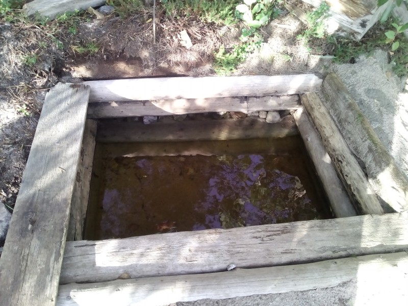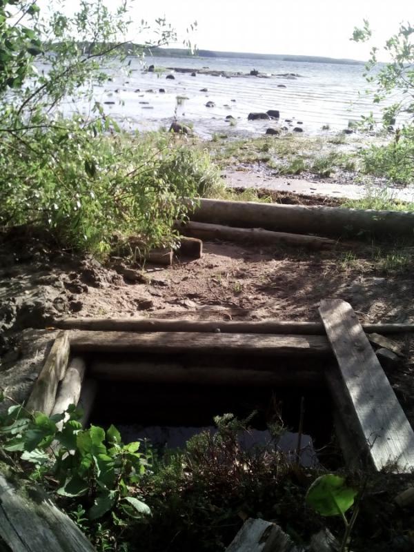 Остров Сидоров. Метка 0 — колодец у берега, стекает ручей, вода отстаивается. Метка 1 — бывшая база промысловиков, сейчас турбизнес, сверху тоже ручей, можно набирать, лучше из крана рядом с домиком.