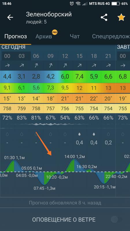 Шкала, на которую указывает стрелка на скрине, — это линия приливов и отливов. Смотрим её при планировании выхода и возврата.